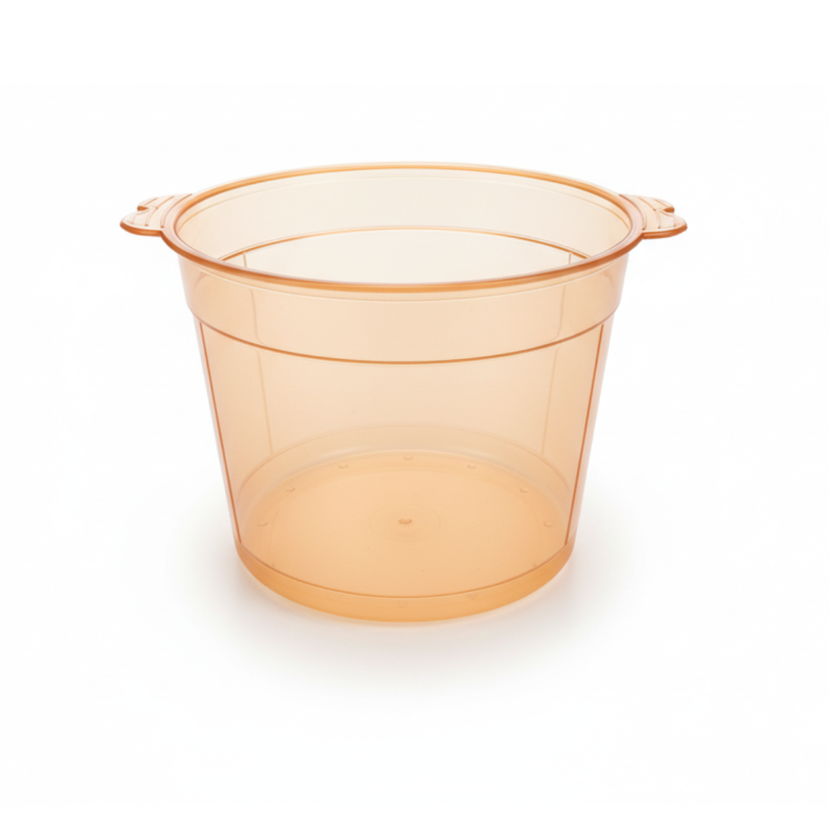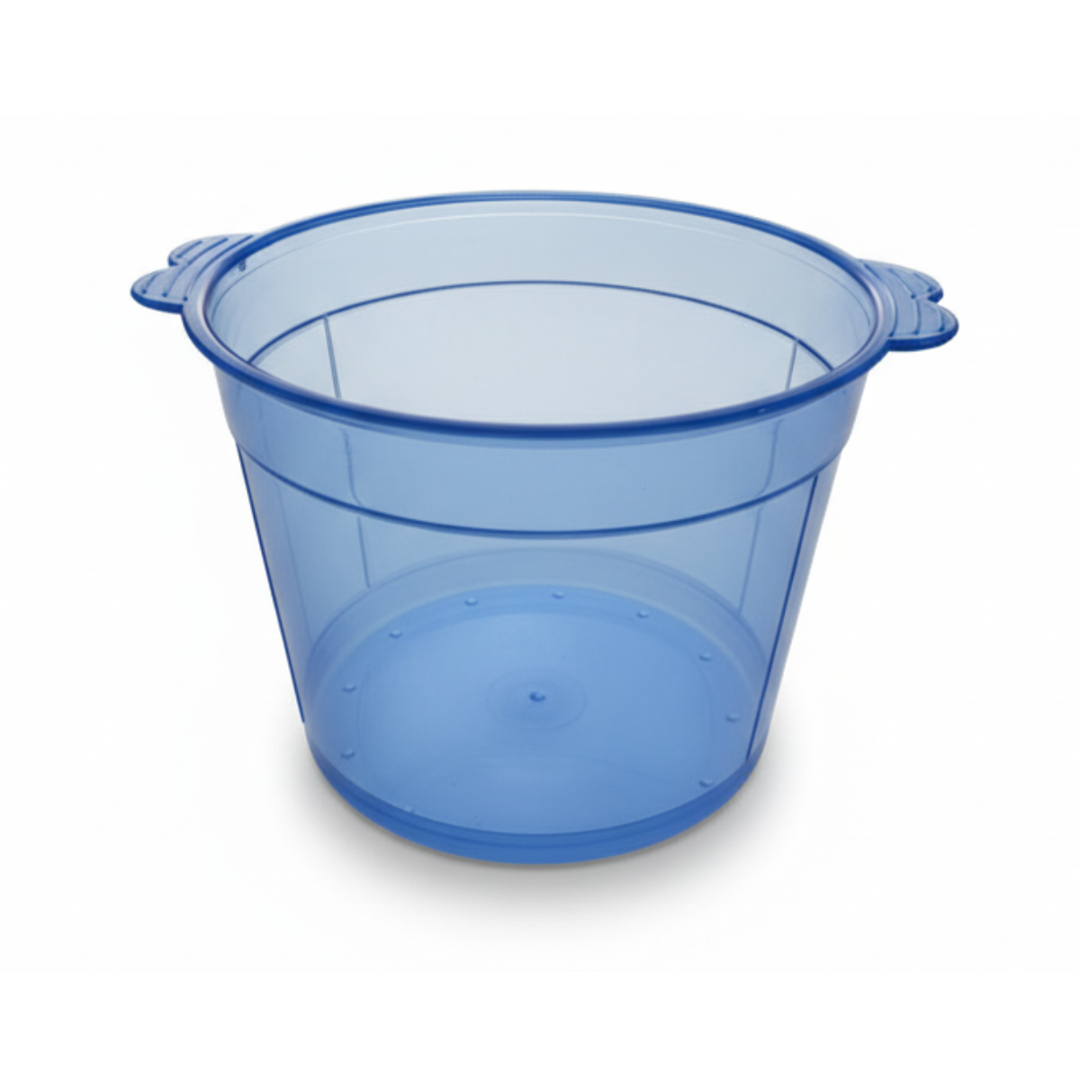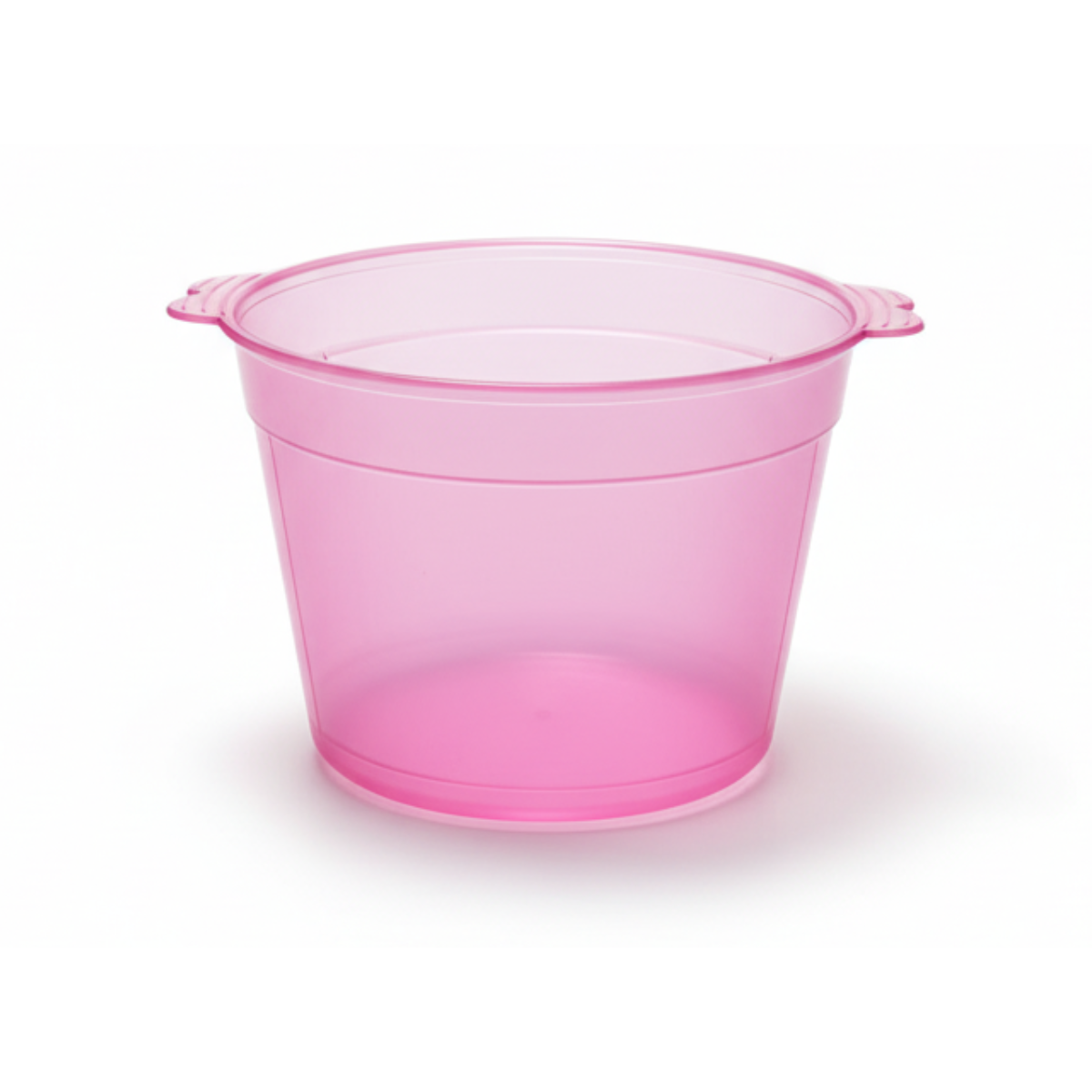 Hielera de polipropileno de 48 oz (1419 ml) y 11.43 cm de altura, ideal para mantener hielo en bares, antros, fiestas o como centro de mesa. Versátil para decoración y manualidades. Disponible en colores natural, azul, rosa, verde y rojo, con diámetro superior de 12.5 cm.