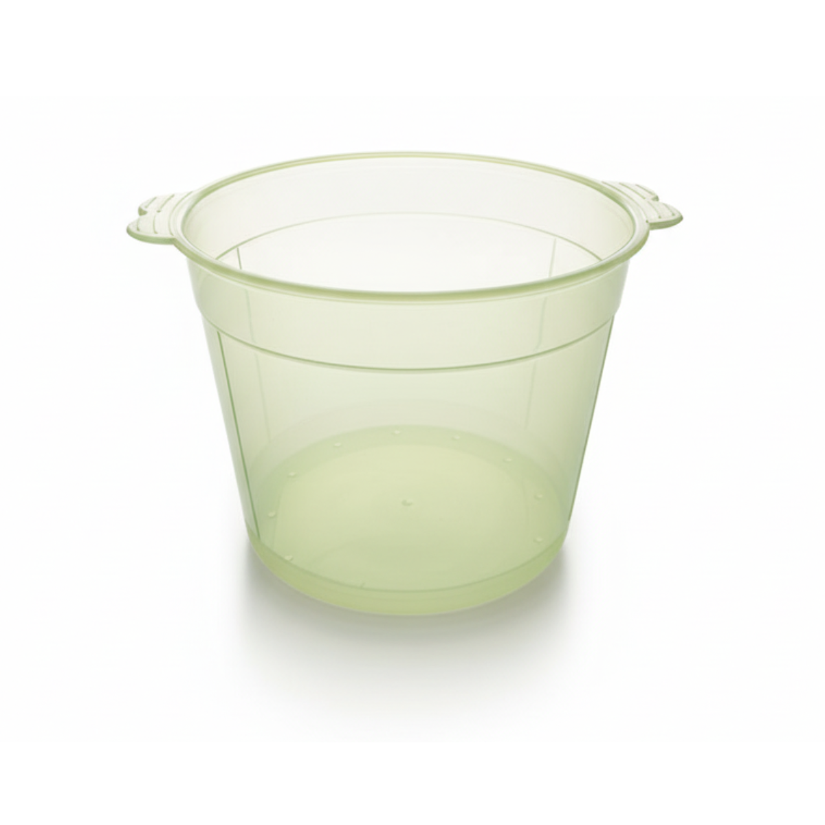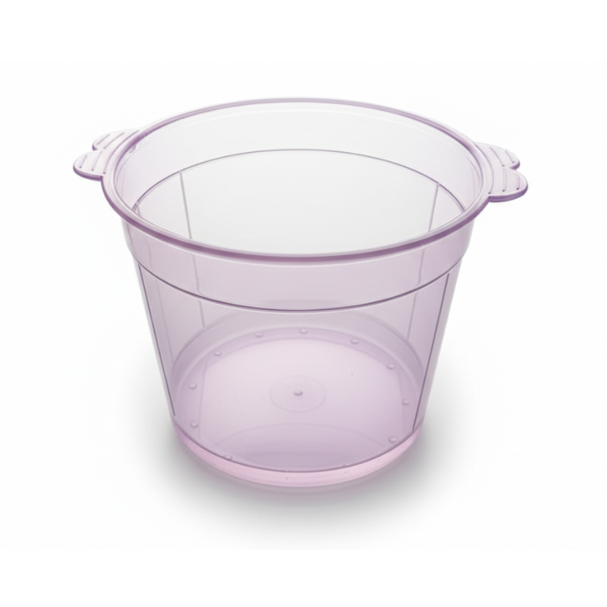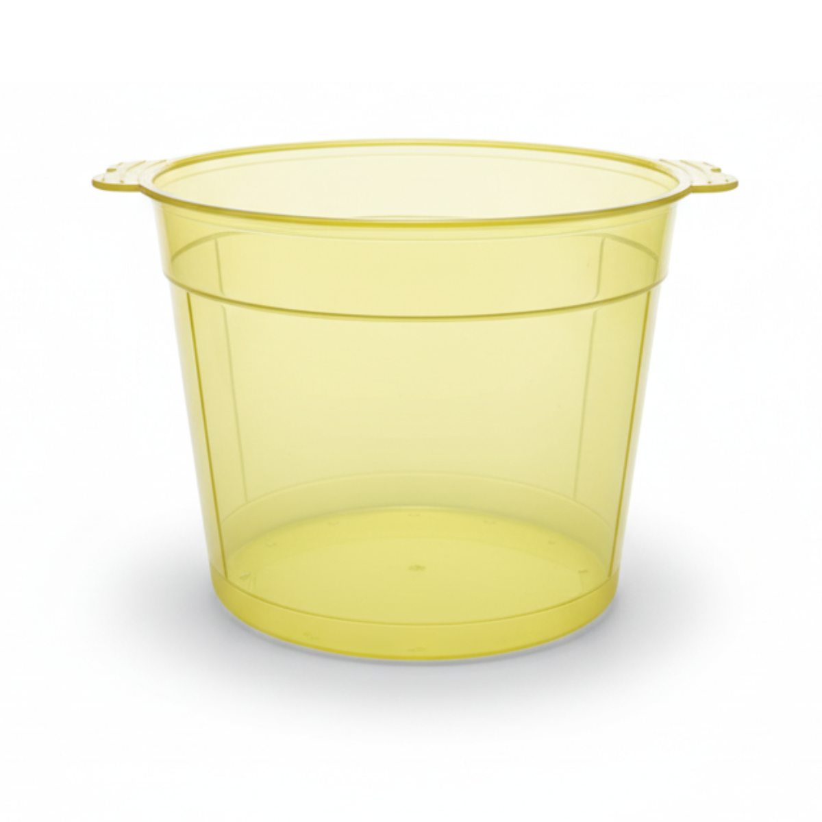 Hielera de polipropileno de 48 oz (1419 ml) y 11.43 cm de altura, ideal para mantener hielo en bares, antros, fiestas o como centro de mesa. Versátil para decoración y manualidades. Disponible en colores natural, azul, rosa, verde y rojo, con diámetro superior de 12.5 cm.